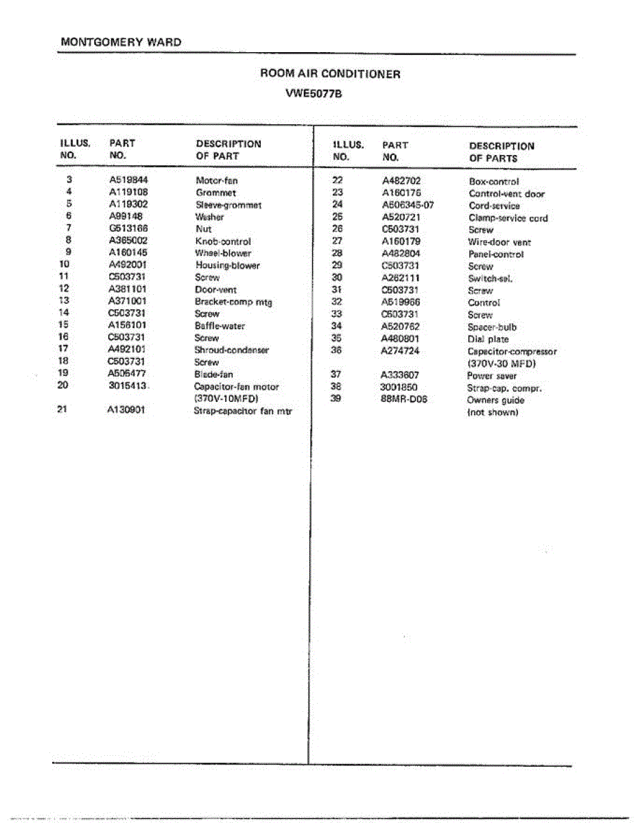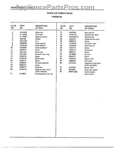 Parts for Frigidaire 5077B: Room Air Conditioner Page 4 Parts