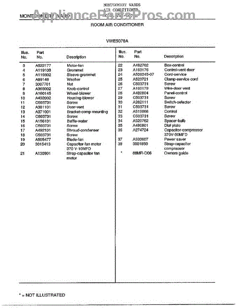 Parts for Frigidaire 5078A: Room Air Conditioner Page 4 Parts