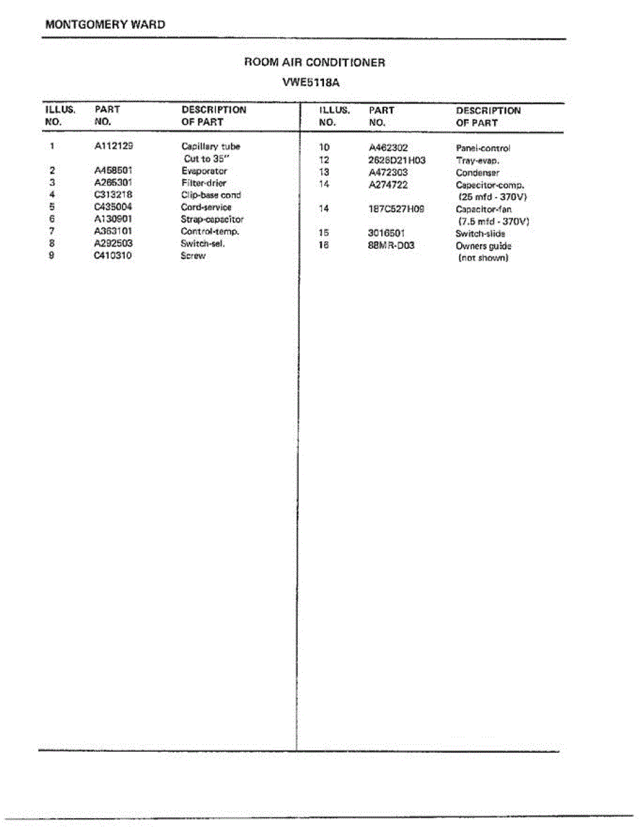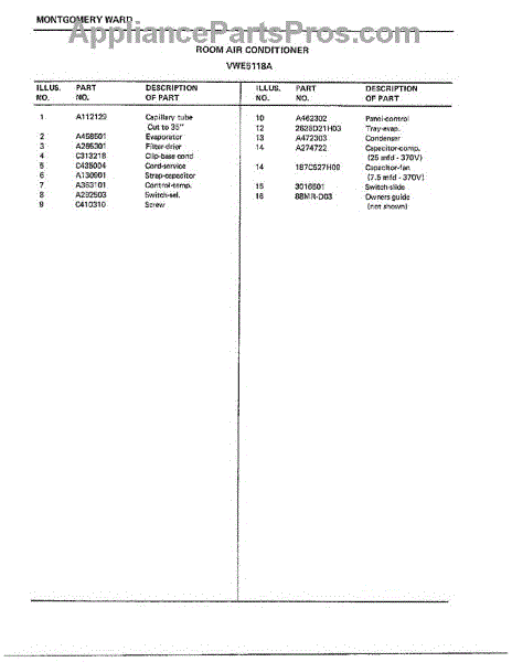 Parts for Frigidaire 5118A: Room Air Conditioner Page 4 Parts