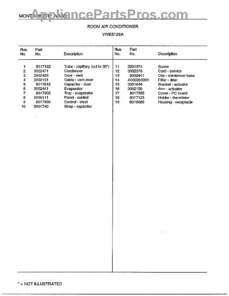 Parts for Frigidaire 5129A: Room Air Conditioner Page 4 Parts