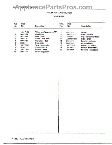Parts for Frigidaire 5139A: Room Air Conditioner Page 4 Parts