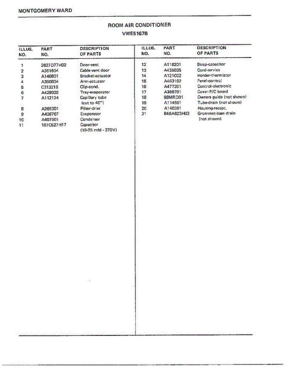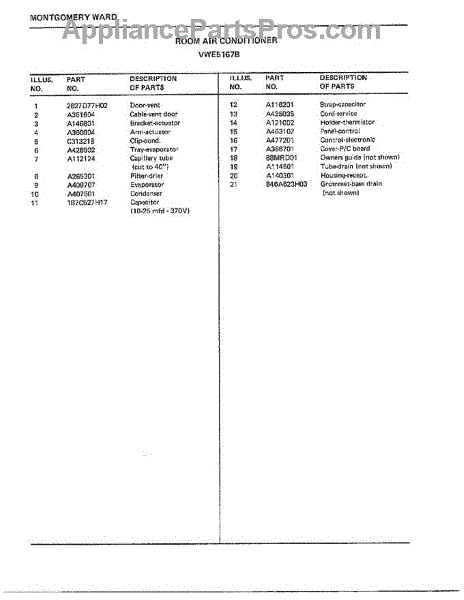 Parts for Frigidaire 5167B: Room Air Conditioner Page 4 Parts