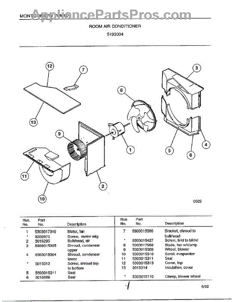 Parts for Frigidaire 5193004: Room Air Conditioner Page 4 Parts
