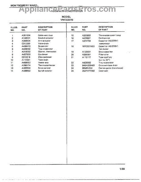 Parts for Frigidaire 5337B: Room Air Conditioner Page 4 Parts
