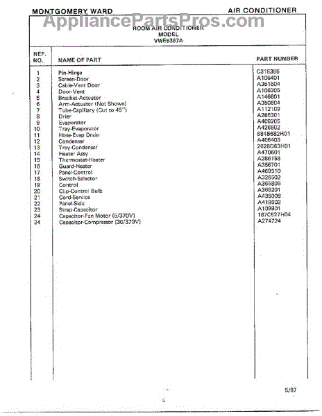 Parts for Frigidaire 5367A: Room Air Conditioner Page 4 Parts