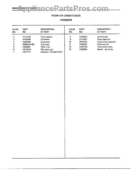 Parts for Frigidaire 5607B: Room Air Conditioner Page 4 Parts