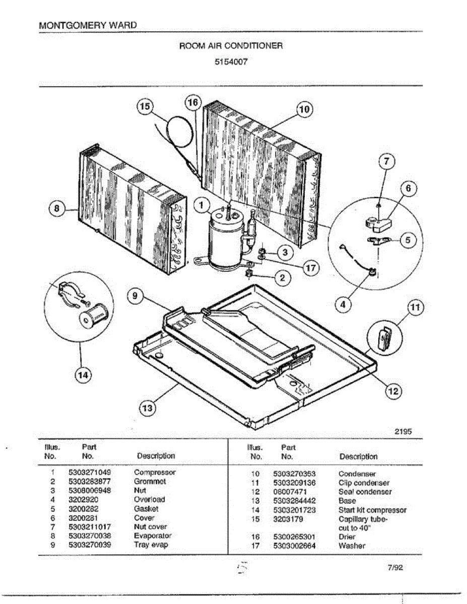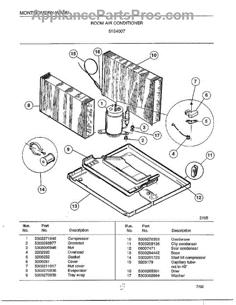 Parts for Frigidaire 5154007: Room Air Conditioner Page 5 Parts