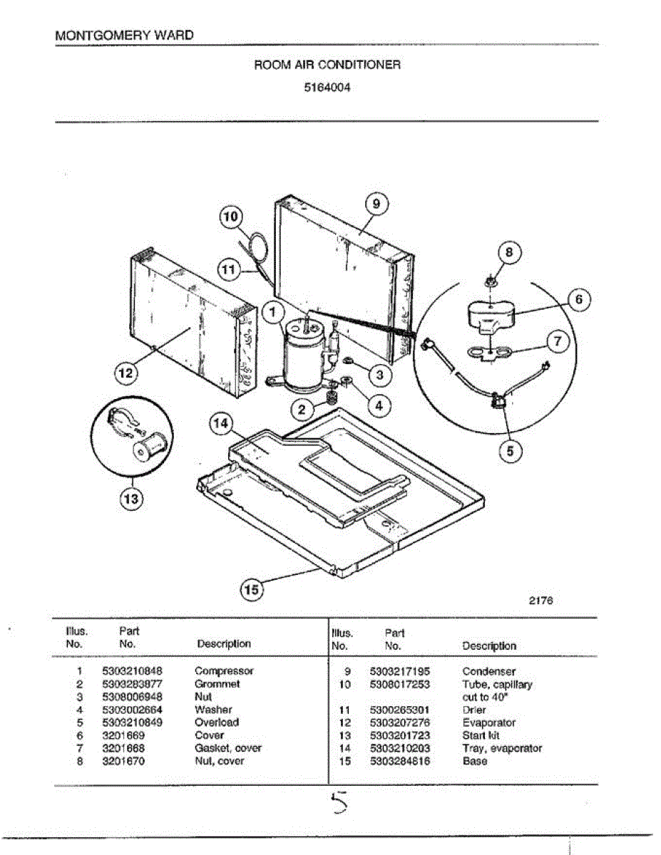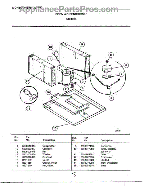 Parts for Frigidaire 5164004: Room Air Conditioner Page 5 Parts