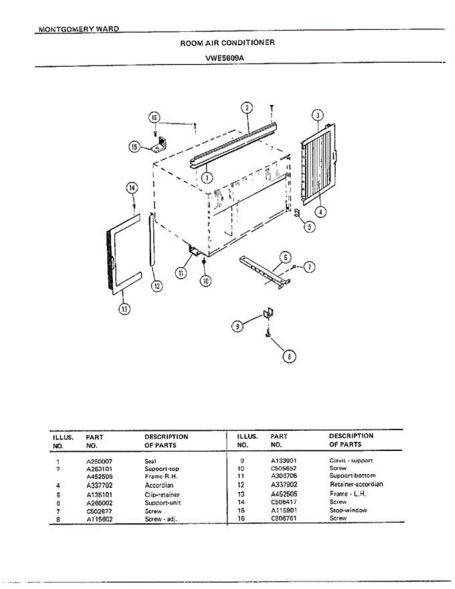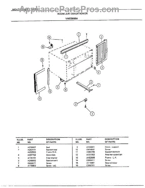 Parts for Frigidaire 5609A: Room Air Conditioner Page 5 Parts