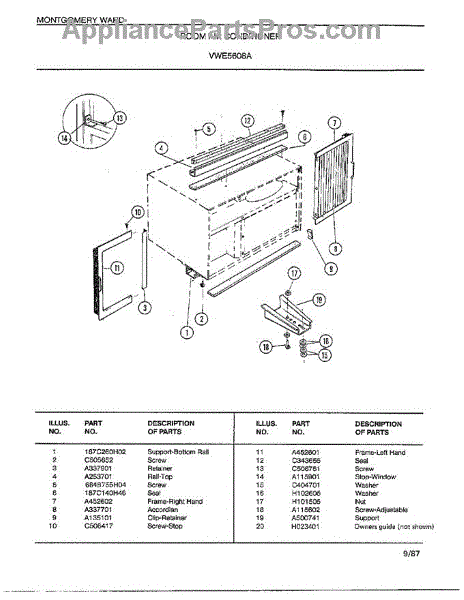 Parts for Frigidaire 5908A: Room Air Conditioner Page 5 Parts
