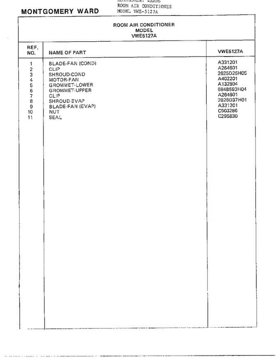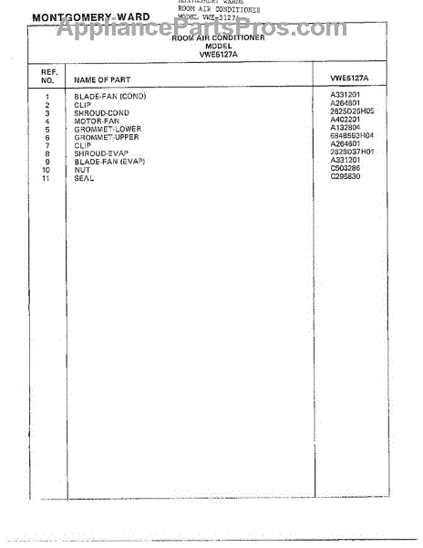 Parts for Frigidaire 5127A: Room Air Conditioner Page 6 Parts