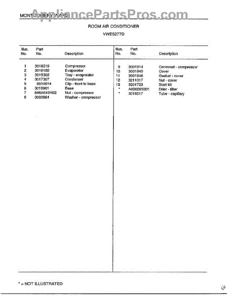 Parts for Frigidaire 5277D: Room Air Conditioner Page 6 Parts