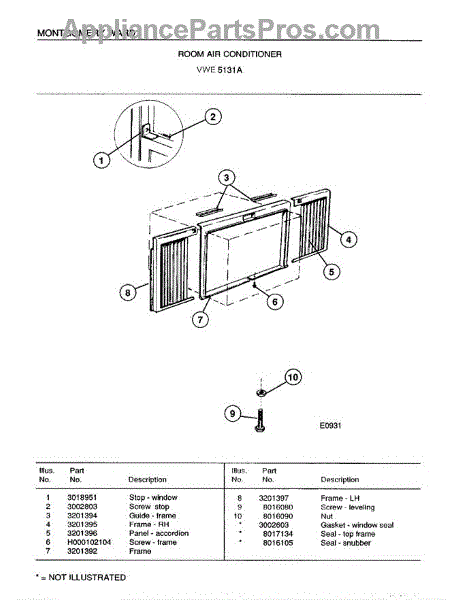 Parts for Frigidaire 5131A: Room Air Conditioner Page 7 Parts