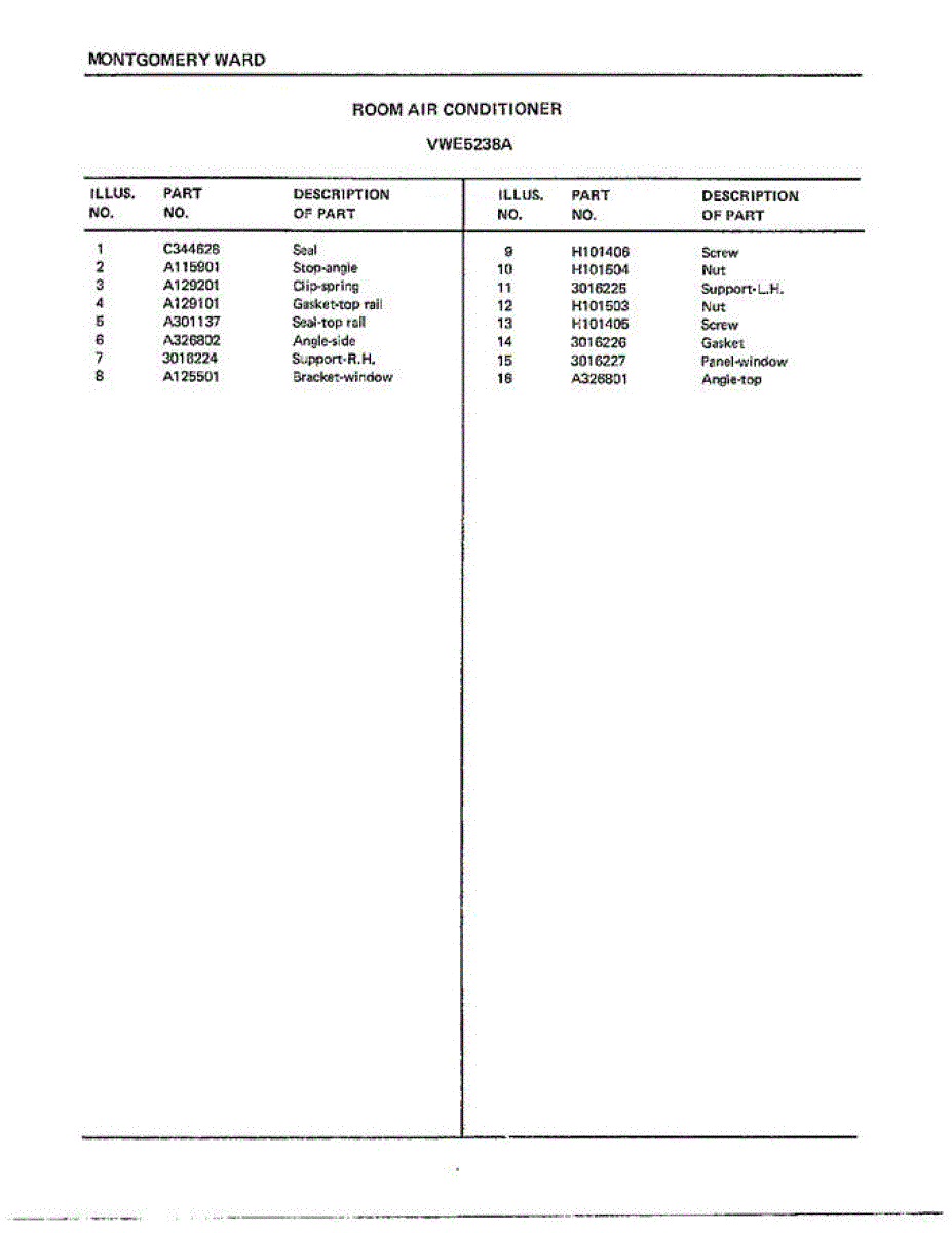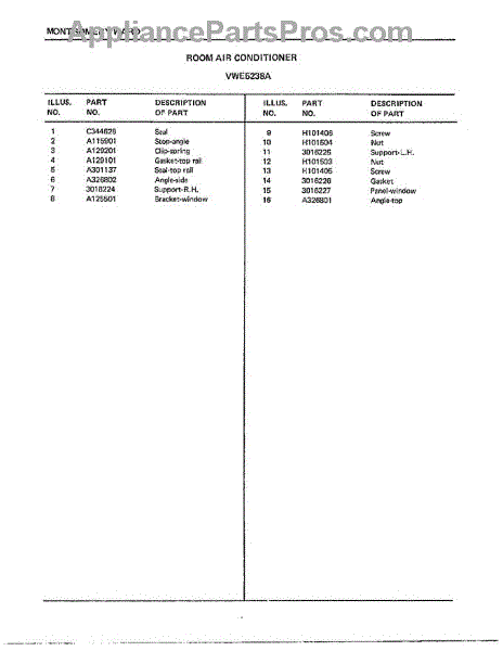 Parts for Frigidaire 5238A: Room Air Conditioner Page 2 Parts