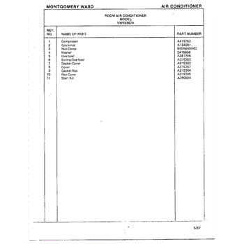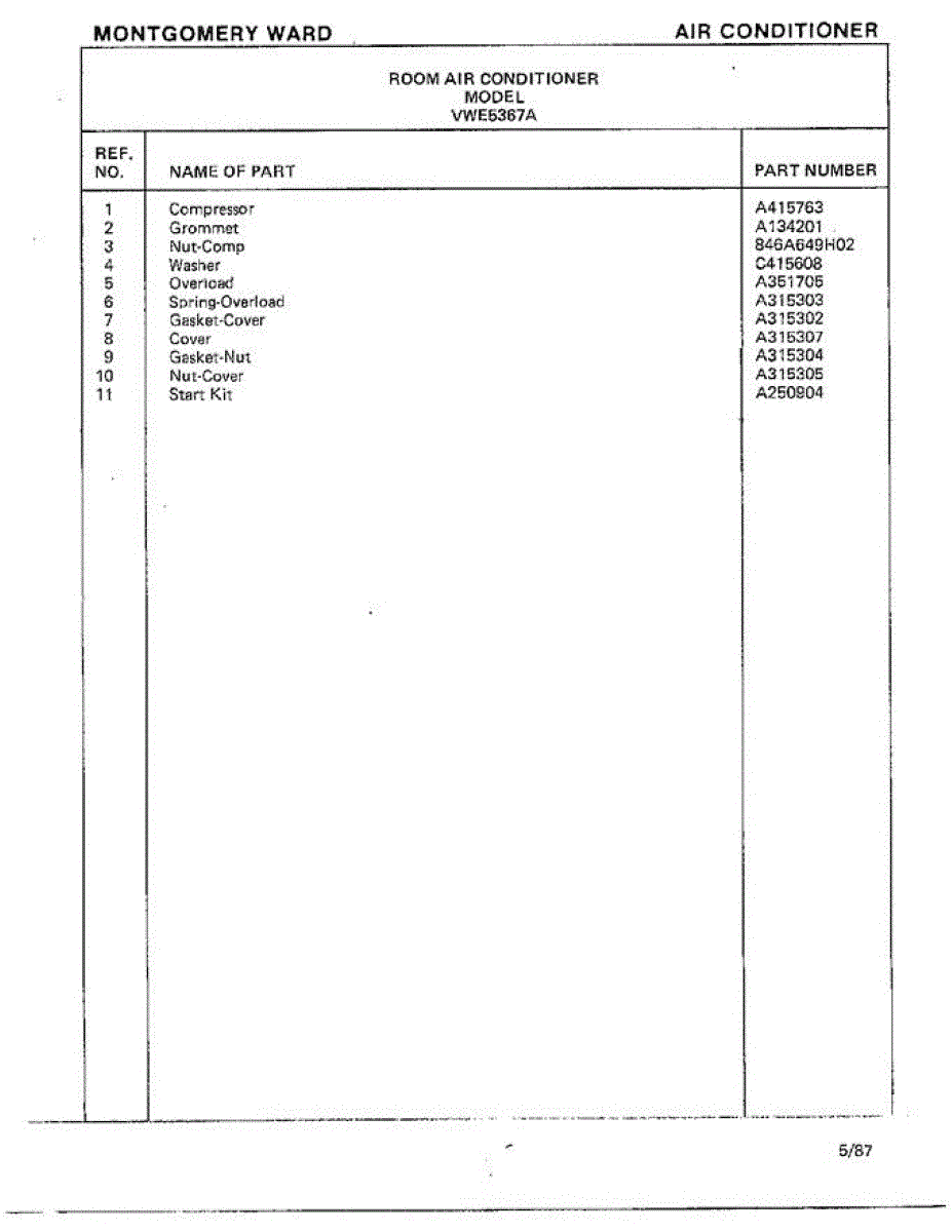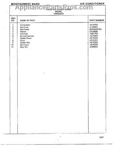 Parts for Frigidaire 5367A: Room Air Conditioner Page 8 Parts