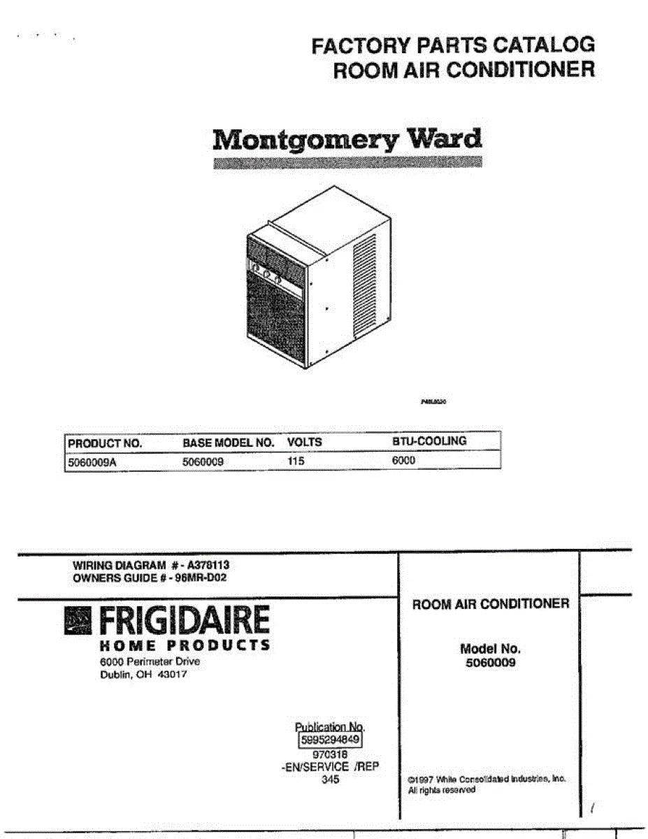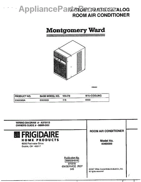 Parts for Frigidaire 5060009: Room Air Conditioner Parts