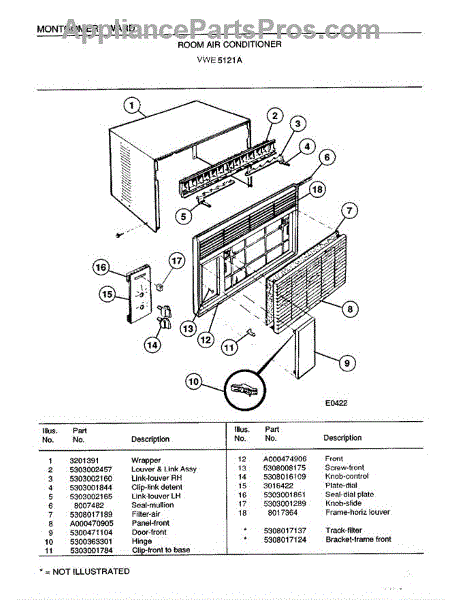 Parts for Frigidaire 5121A: Room Air Conditioner Parts