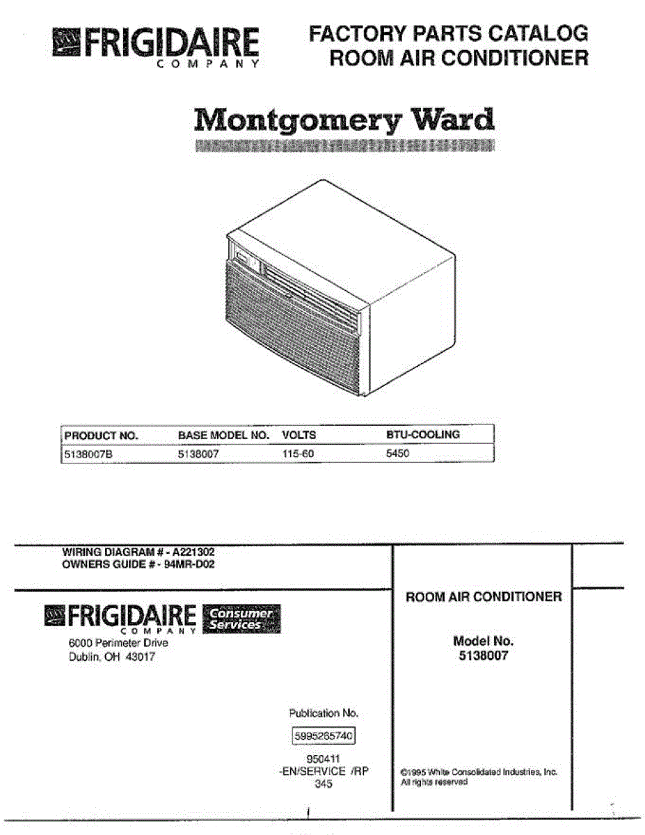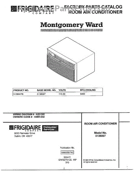 Parts for Frigidaire 5138007: Room Air Conditioner Parts