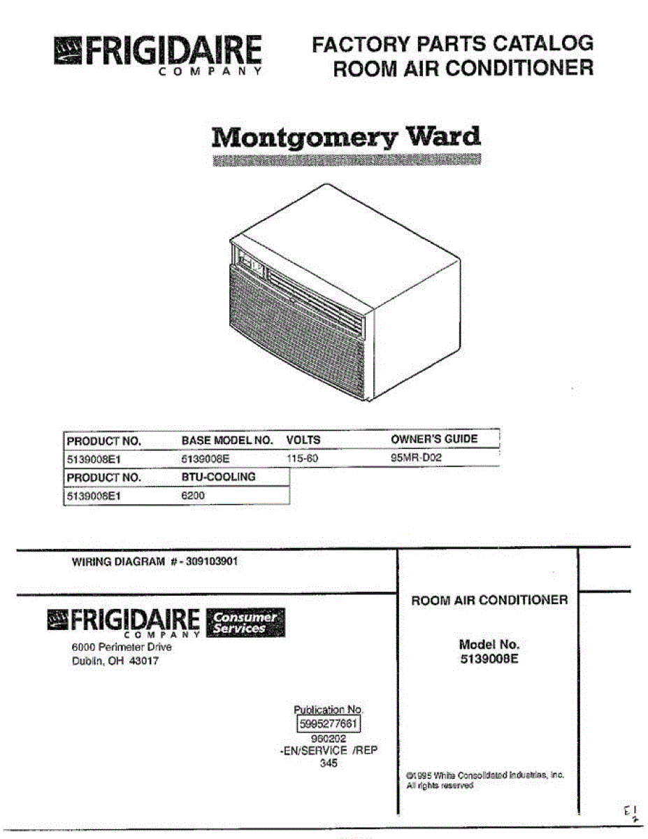 Parts for Frigidaire 5139008E1: Room Air Conditioner Cover Page Parts