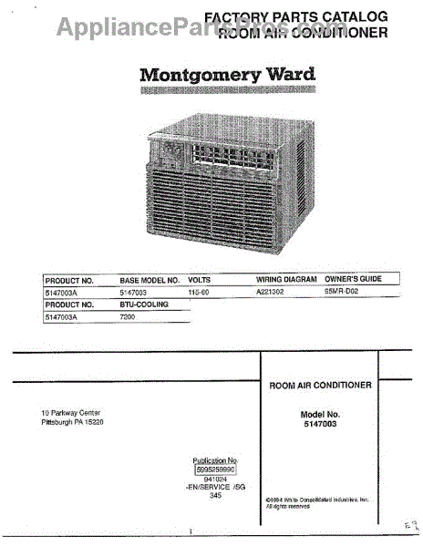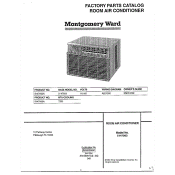 Parts for Frigidaire 5147003: Room Air Conditioner Cover Page Parts