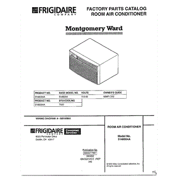 Parts for Frigidaire 5148004A: Room Air Conditioner Cover Page Parts