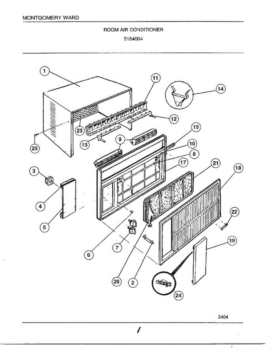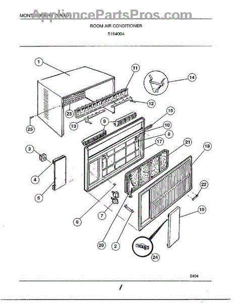 Parts for Frigidaire 5164004: Room Air Conditioner Parts