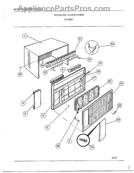 Parts for Frigidaire 5174001: Room Air Conditioner Parts