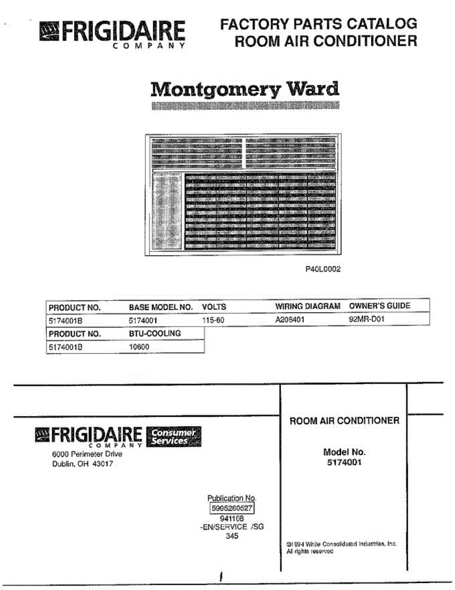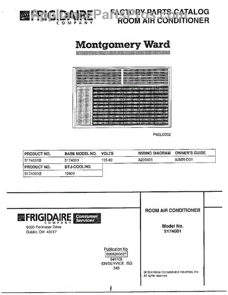Parts for Frigidaire 5174001B: Room Air Conditioner Parts