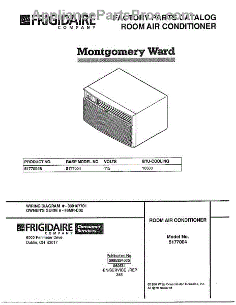 Parts for Frigidaire 5177004B: Room Air Conditioner Parts