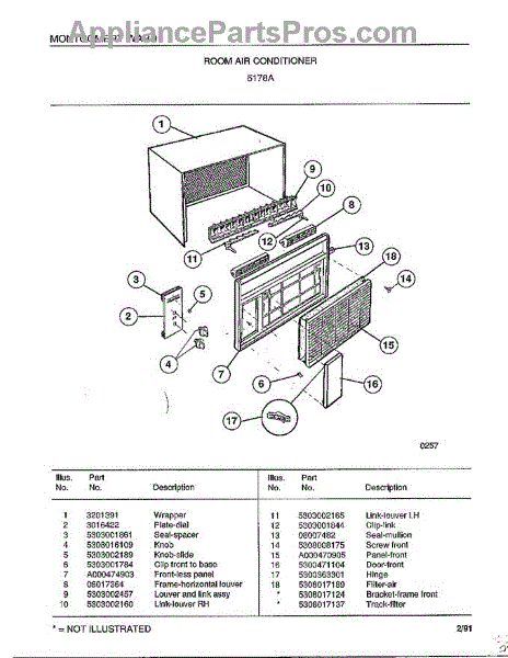 Parts for Frigidaire 5178A: Room Air Conditioner Parts