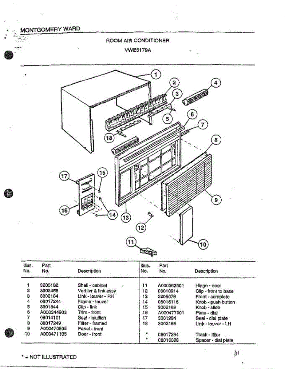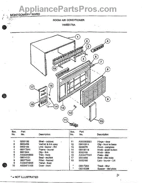 Parts for Frigidaire 5179A: Room Air Conditioner Parts