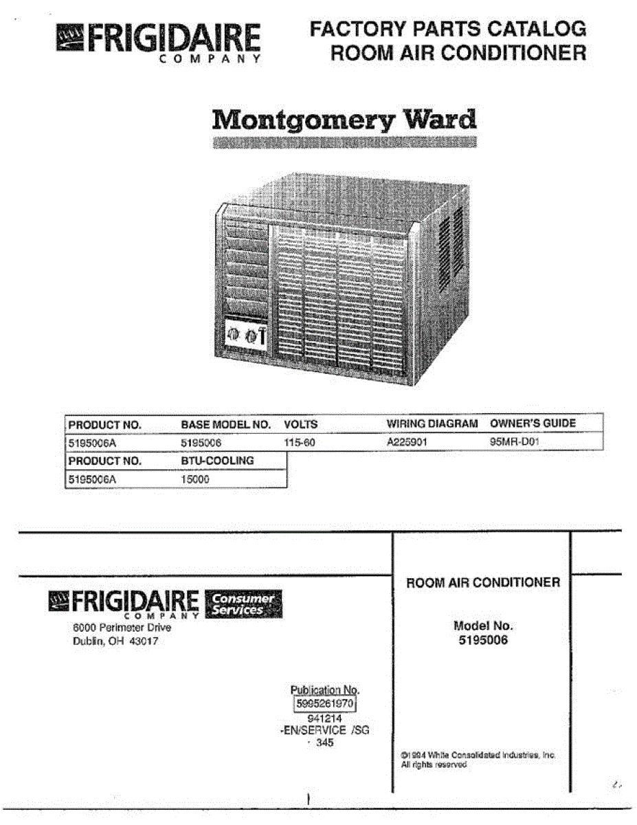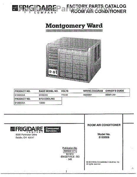 Parts for Frigidaire 5195006A: Room Air Conditioner / Front Cover Parts