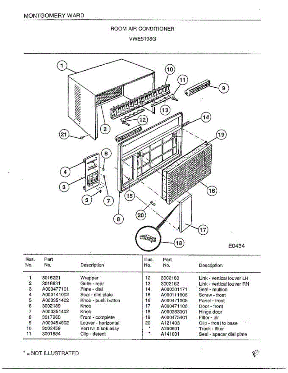 Parts for Frigidaire 5198G: Room Air Conditioner Parts