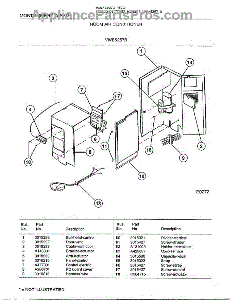 Parts for Frigidaire 5257B: Room Air Conditioner Parts