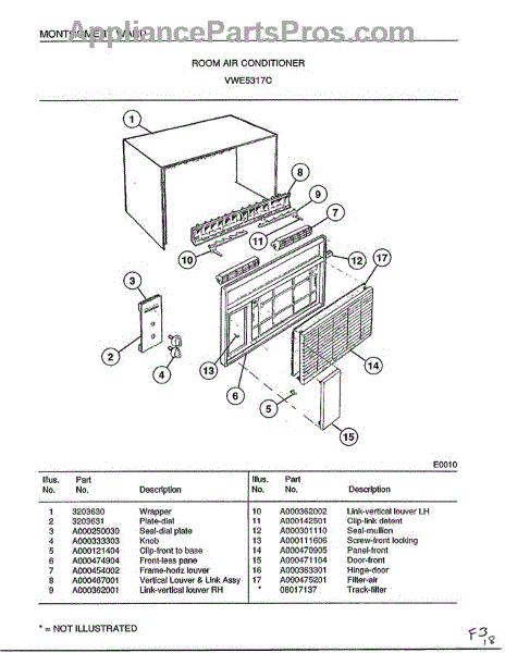 Parts for Frigidaire 5317C: Room Air Conditioner Parts