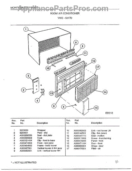 Parts for Frigidaire 5317D: Room Air Conditioner Parts