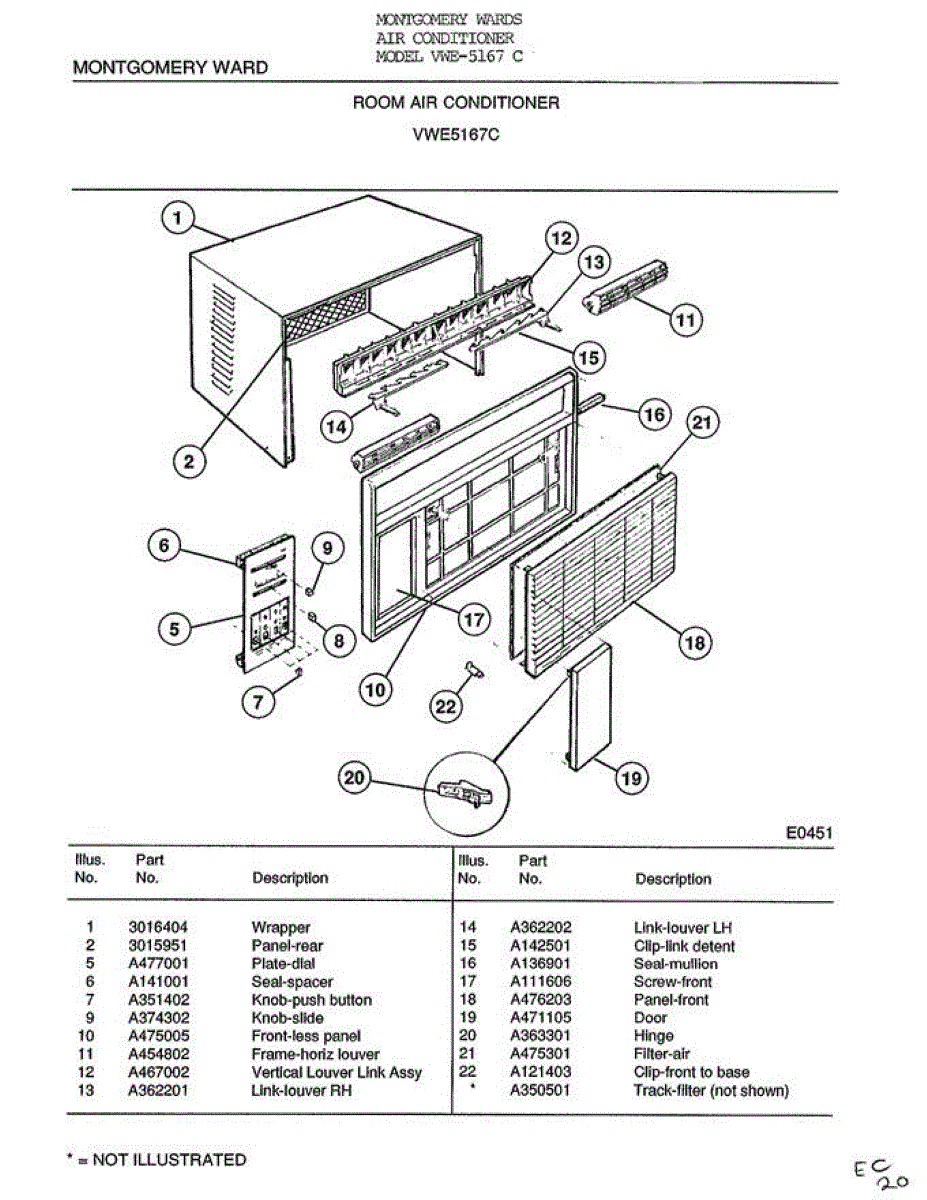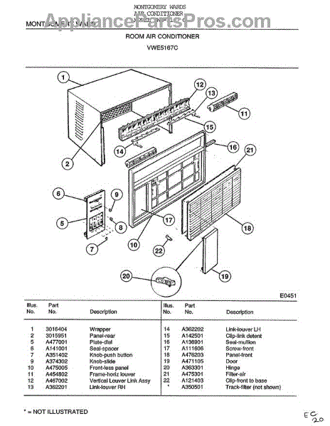 Parts for Frigidaire 5467C: Room Air Conditioner Parts