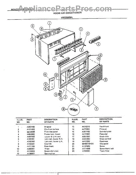 Parts for Frigidaire 5609A: Room Air Conditioner Parts