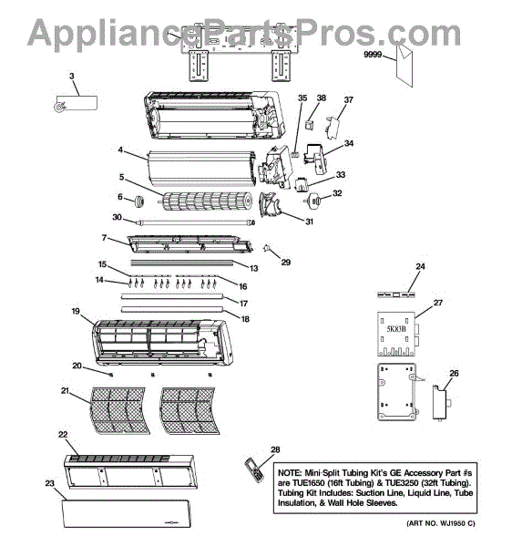 Parts for Ge AE1RD10AM0V1: 01 - Room Air Conditioner Parts