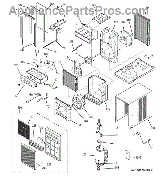 Parts for Ge AGX10AHG1: 01 - Room Air Conditioner Parts