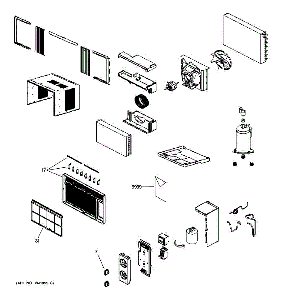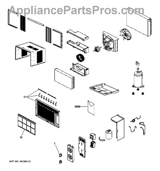 Parts for Ge ATV05LJW1: 01 - Room Air Conditioner Parts
