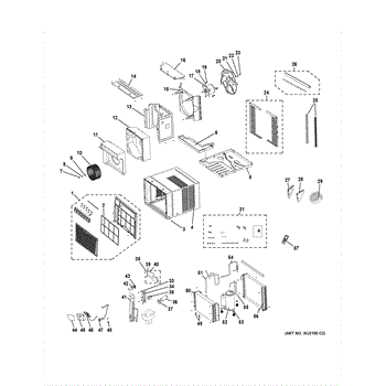 This is the air filter assembly for select GE room air conditioners. It traps dust and lint before they reach the evaporator coil, helping maintain airflow and cooling performance.