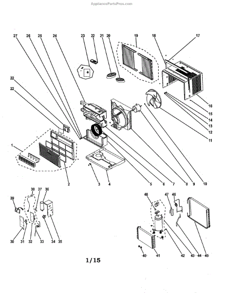 This air filter assembly traps dust and lint before they reach the evaporator coil, helping your room air conditioner maintain airflow and cooling performance. Replace clogged or damaged filters to protect components and keep cooling consistent. What it does: