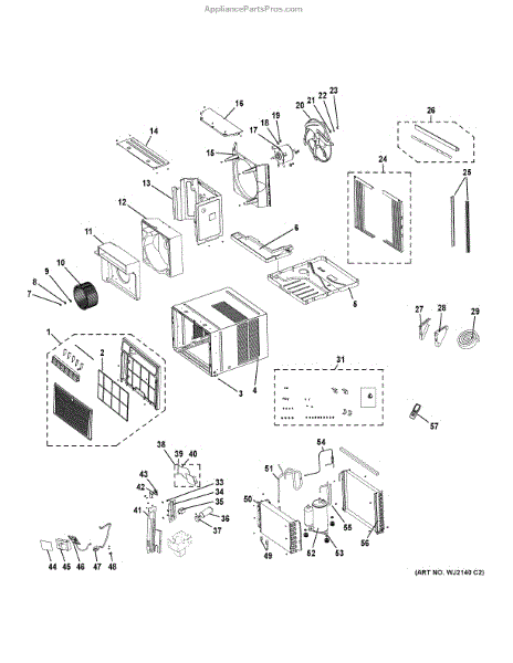 This is the air filter assembly for select GE room air conditioners. It traps dust and lint before they reach the evaporator coil, helping maintain airflow and cooling performance.