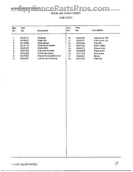 Parts for Frigidaire 5198B: Roon Air Conditioner Page 2 Parts