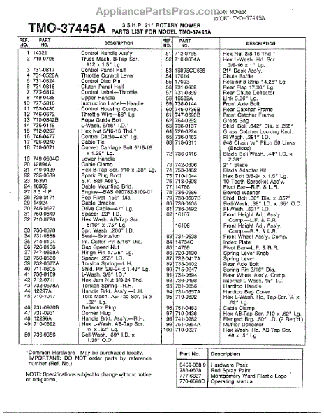 Parts for Mtd 37445A: 3.5Hp 21" Rotary Mower / Accessories Page 2 Parts