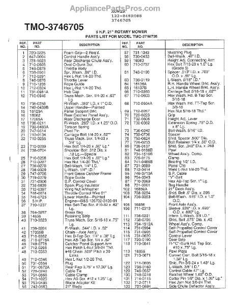 Parts for Mtd 122-848R088: 5Hp 21" Rotary Mower Page 2 Parts