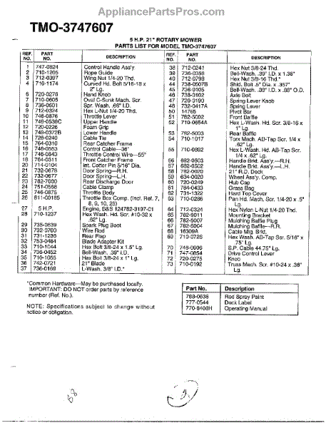 Parts for Mtd 3747607: 5Hp 21" Rotary Mower Page 2 Parts