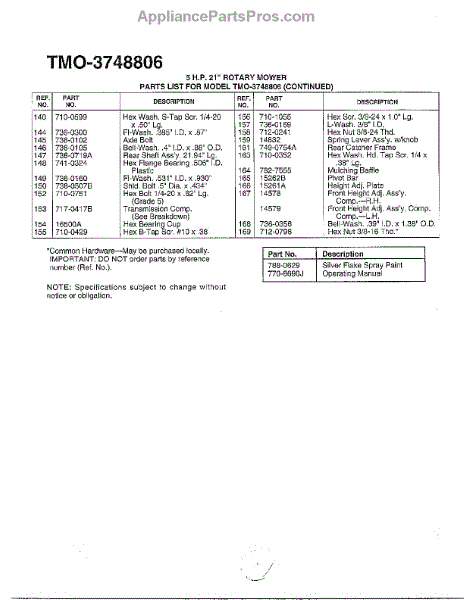Parts for Mtd 3748806: 5Hp / 21" Rotary Mower Page 3 Parts
