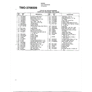 Parts for Mtd 112-082R088: 3.75 Hp 22" Rotary Mower Page 2 Parts